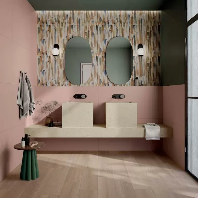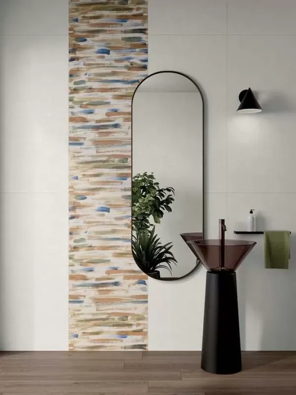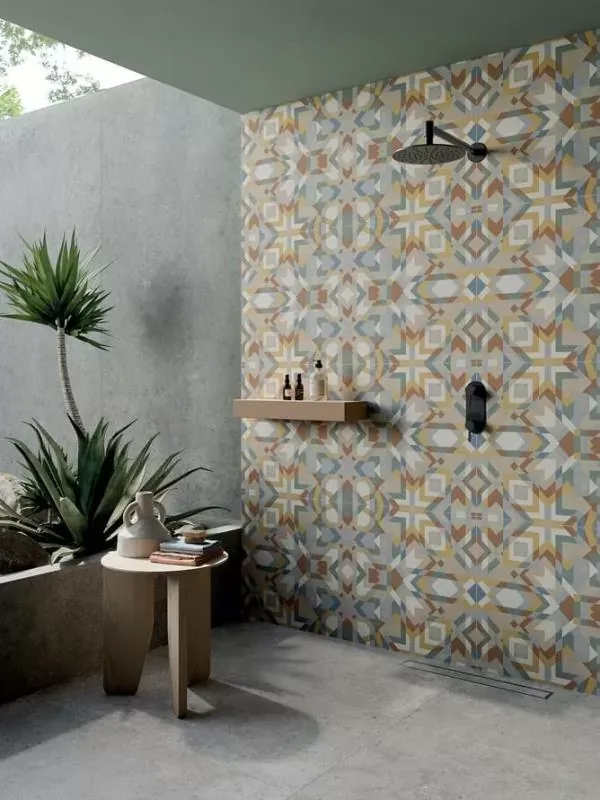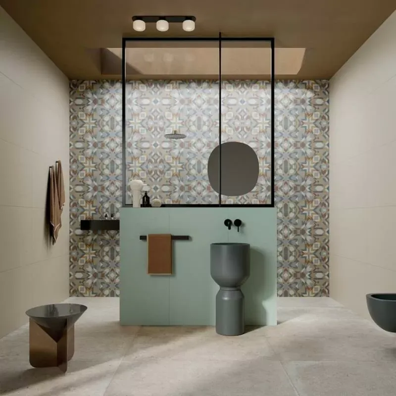 Итальянский, натуральный керамогранит AMPLIFY RET 60х120 прямоугольной формы, размера 120x60, бежевого цвета. Данный вид керамогранита, с оригинальным орнаментом, подойдет для пола Вашей ванной.