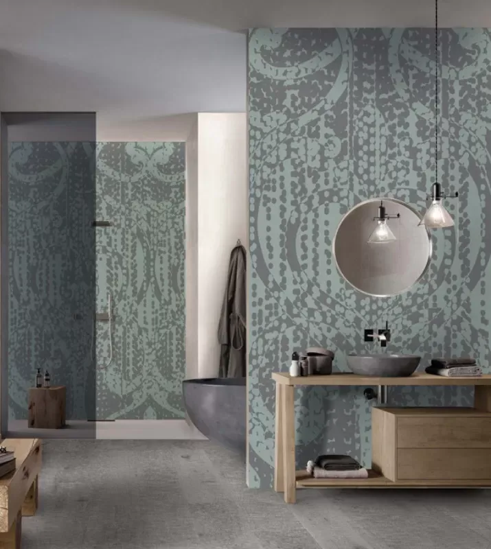 Итальянский, натуральный керамогранит 0009561 SECRET GARDEN 120x280 прямоугольной формы, размера 120x280, зелёного цвета. Данный вид керамогранита, с изображениями листьев, подойдет на стену Вашей ванной.