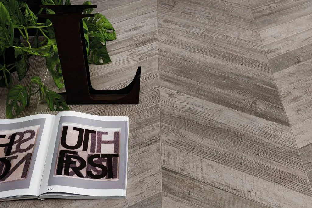 Итальянский, натуральный керамогранит AN3F Nash White Wood Battiscopa Sag.SX 7,2x30 в форме паркетной доски,