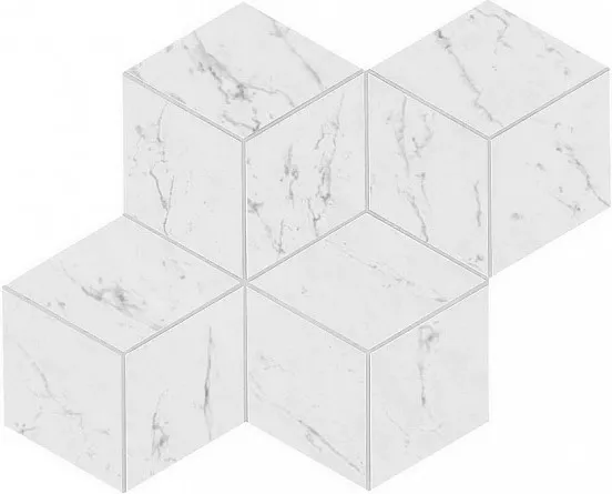 Итальянский, лаппатированный керамогранит AS2J Marvel Carrara Pure Mosaico Esagono Lapp 30x35в форме кирпича,