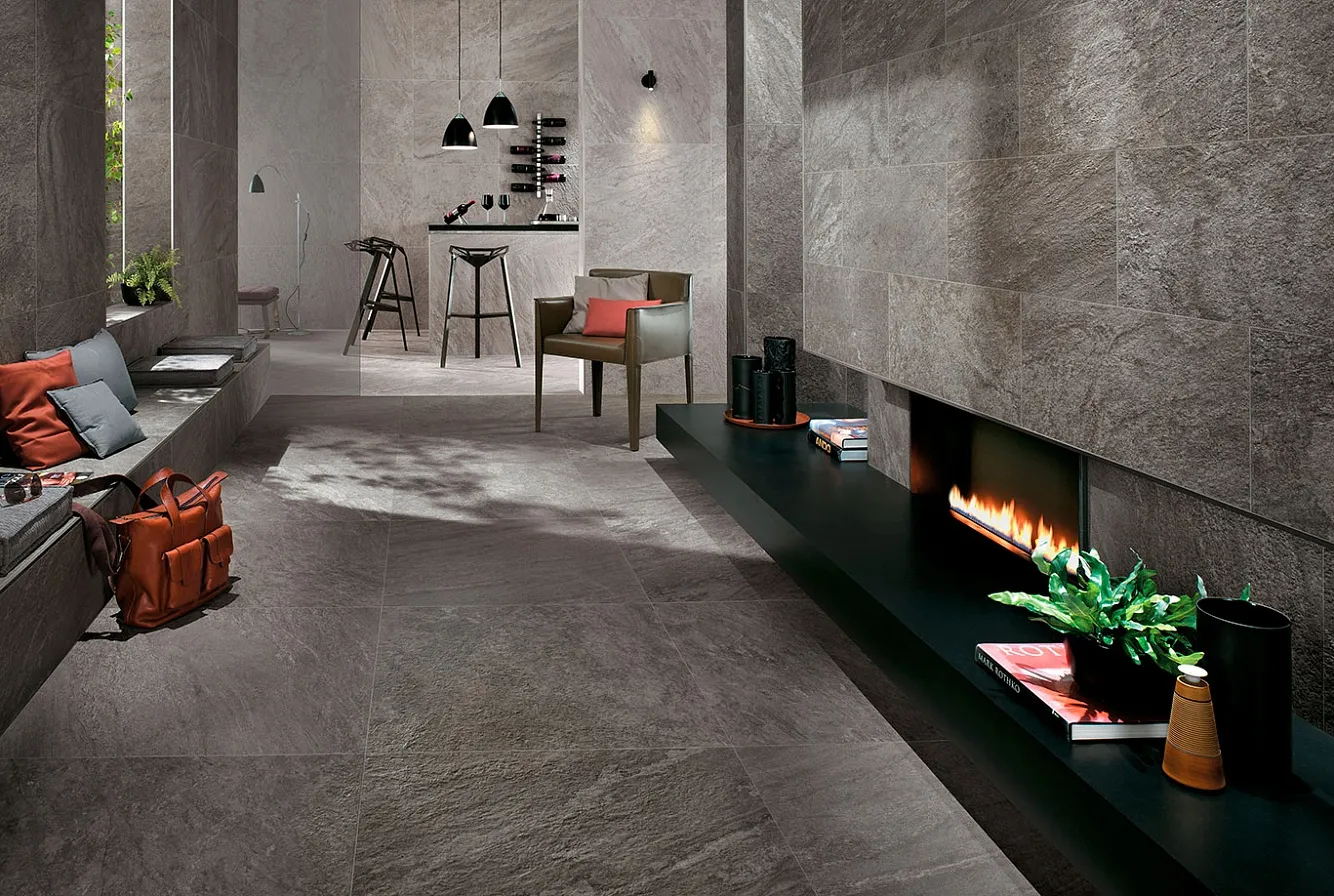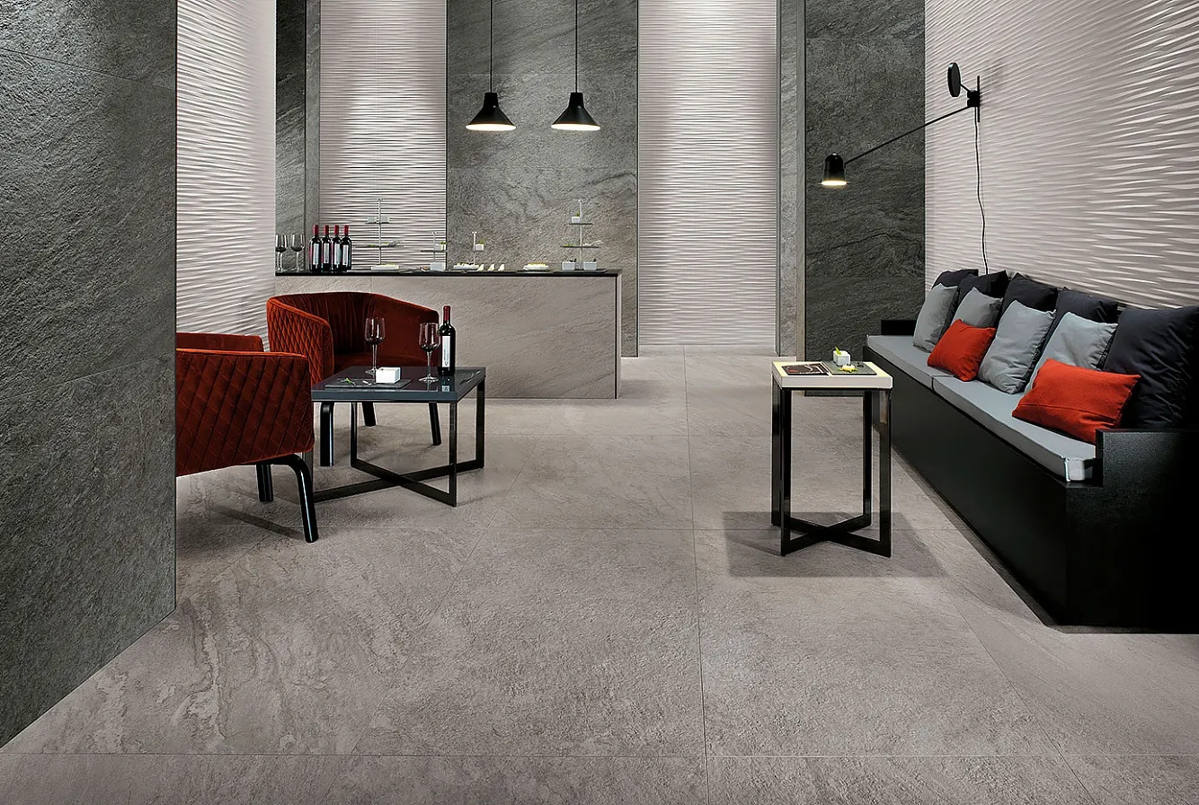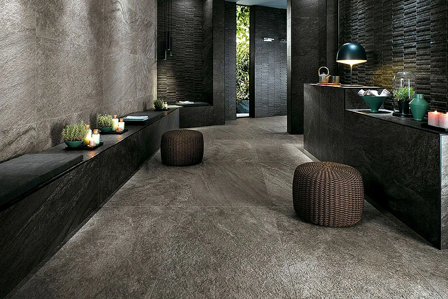 размера 45x90, серого цвета. Данный вид керамогранита, имитирующий камень,