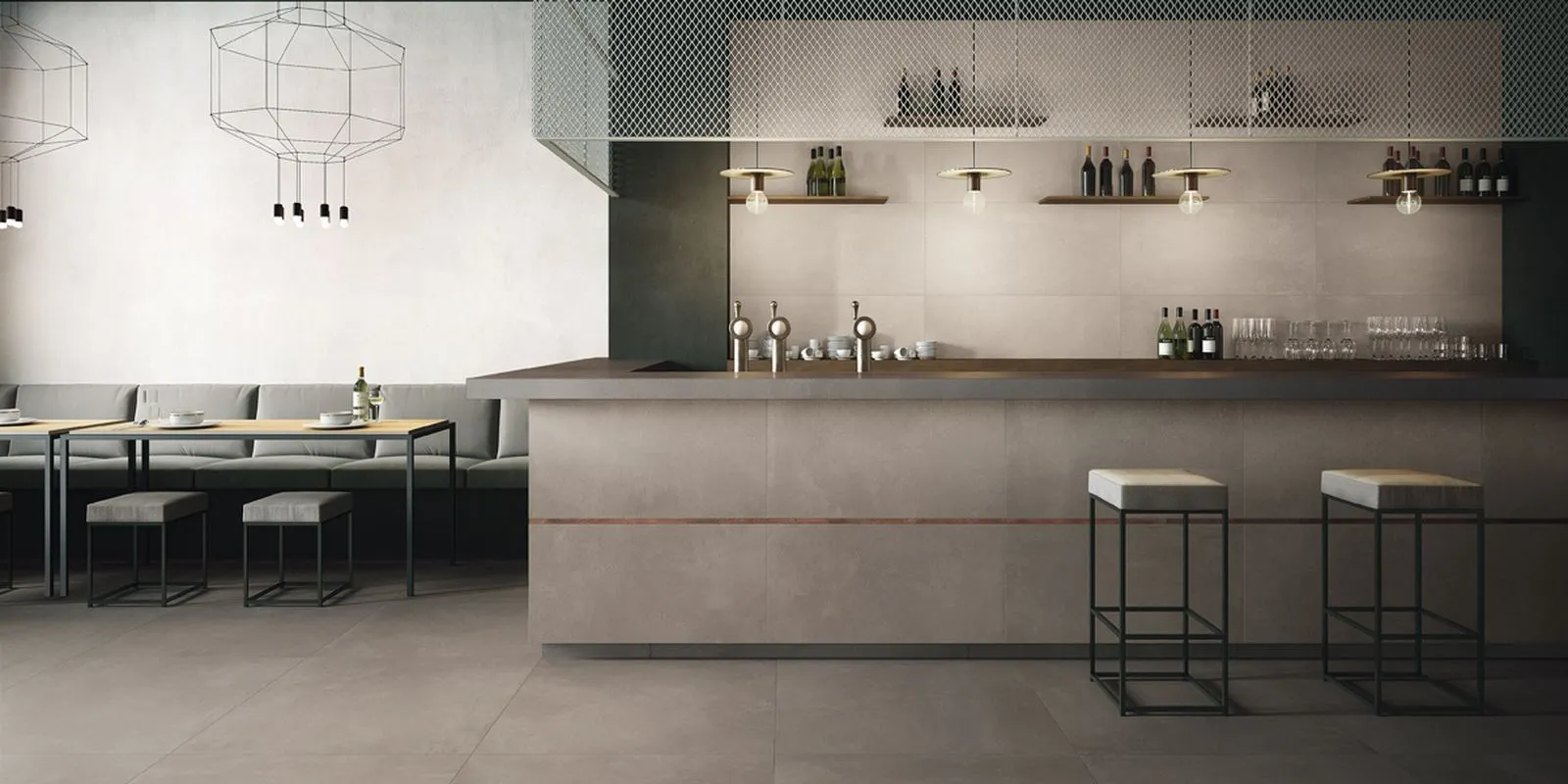 размера 60x120, бежевого цвета. Данный вид керамогранита, имитирующий бетон,