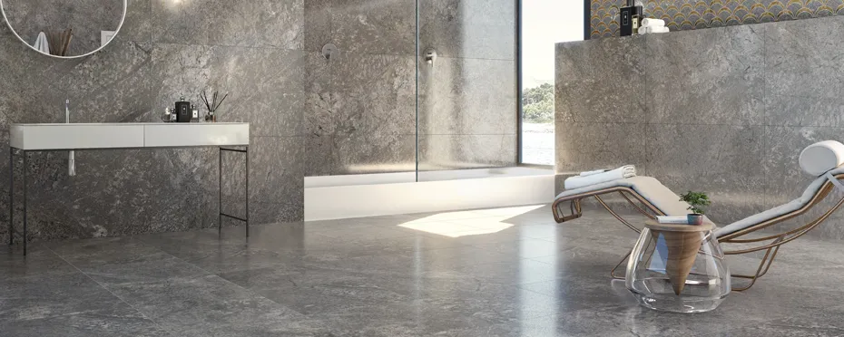 размера 60x120, синего цвета. Данный вид керамогранита, имитирующий камень,