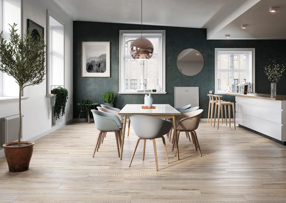 Испанский, глазурованный матовый керамогранит Belsize Miel 15x90 в форме паркетной доски,