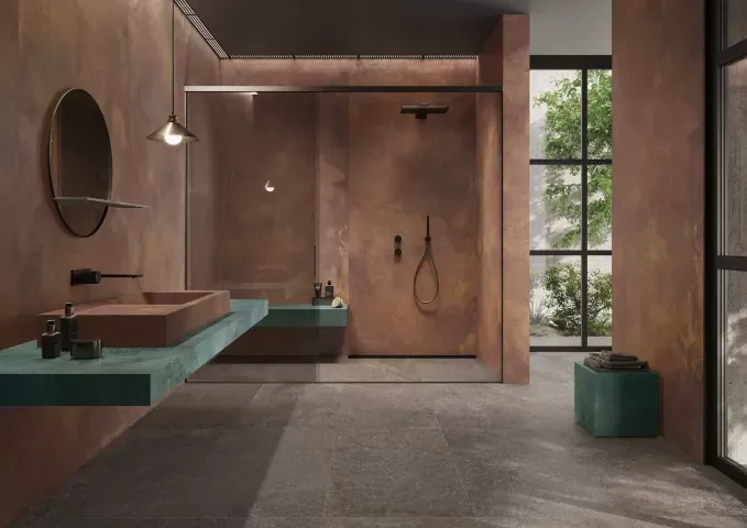 Итальянский, полированные керамогранит AGJA Alchemy Tc.Mint Luc RT 9mm 60x120 прямоугольной формы, размера 60x120, бирюзового цвета. Данный вид керамогранита, имитирующий камень, подойдет для пола Вашей ванной.