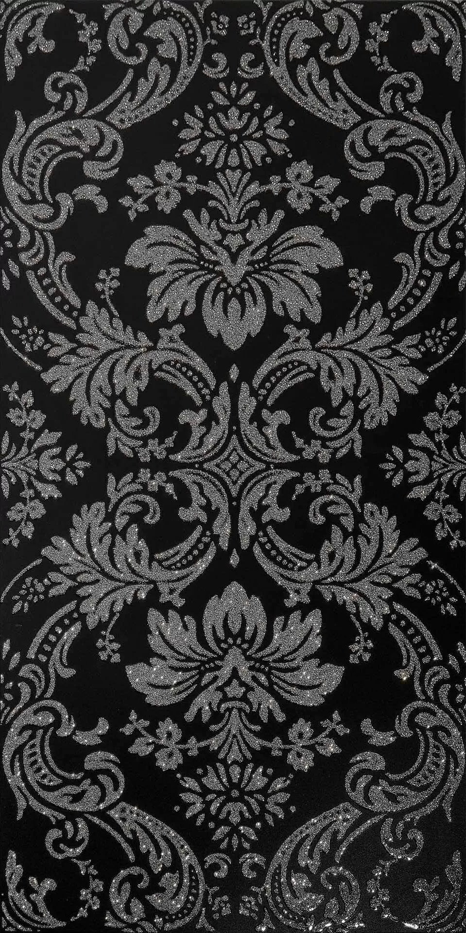 Итальянский, натуральный керамогранит Architecture Damask Black+Silver Naturale 30x60 прямоугольной формы, размера 30x60, чёрного цвета. Данный вид керамогранита, имитирующий обои, подойдет как декор Вашей ванной.