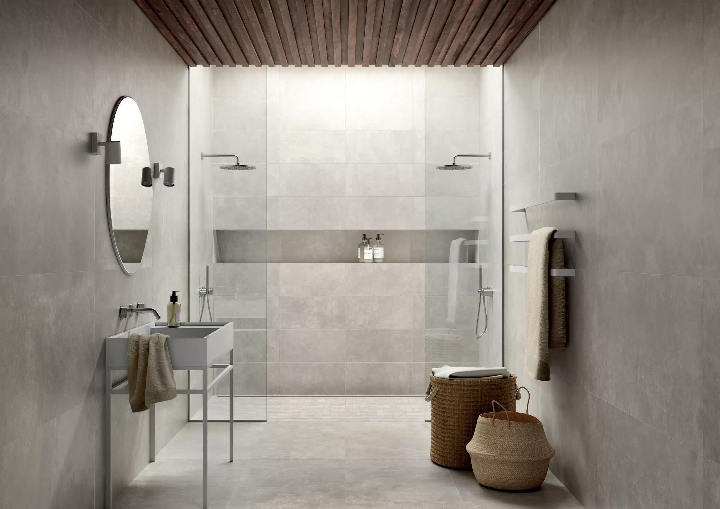 Итальянский, антислип керамогранит 13090152 Metropolis Greige Naturale R10 9mm (2PZ) 120x120 квадратной формы, размера 120x120, коричневого цвета. Данный вид керамогранита, имитирующий бетон, подойдет для пола Вашей ванной.