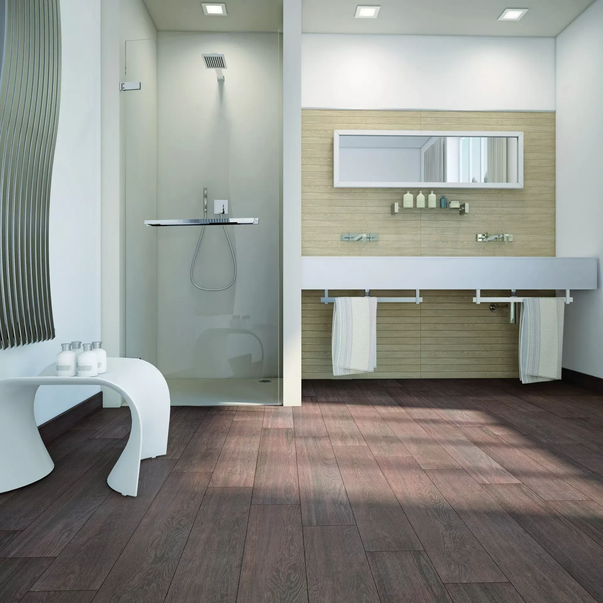 Итальянский, антислип керамогранит Newood Wenge 60x120 прямоугольной формы, размера 60x120, коричневого цвета. Данный вид керамогранита, с рисунком под дерево, подойдет для пола Вашей ванной.
