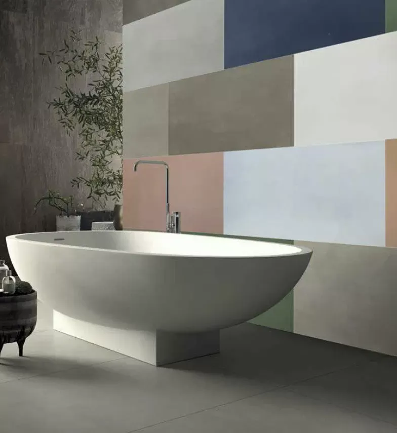 Итальянский, глазурованный матовый керамогранит 11720032 R-Evolution Blue 9mm 60x120 прямоугольной формы, размера 60x120, синего цвета. Данный вид керамогранита, имитирующий бетон, подойдет для пола Вашей ванной.