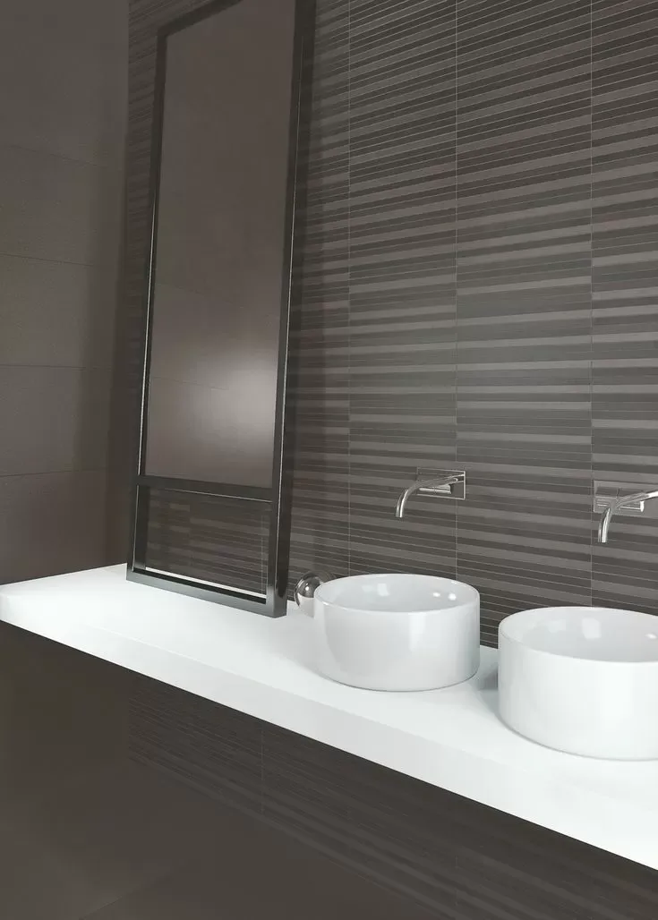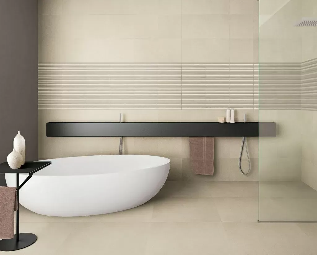 Итальянский, натуральный керамогранит 3748476 Spazio Listello Antracite 9x30 прямоугольной формы, размера 30x9, чёрного цвета. Данный вид керамогранита, имитирующий бетон, подойдет как бордюр Вашей ванной.