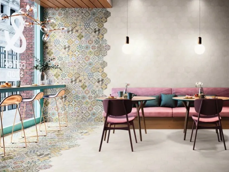 размера 45.5x90, оранжевого цвета. Данный вид керамогранита, с рисунком печворк,