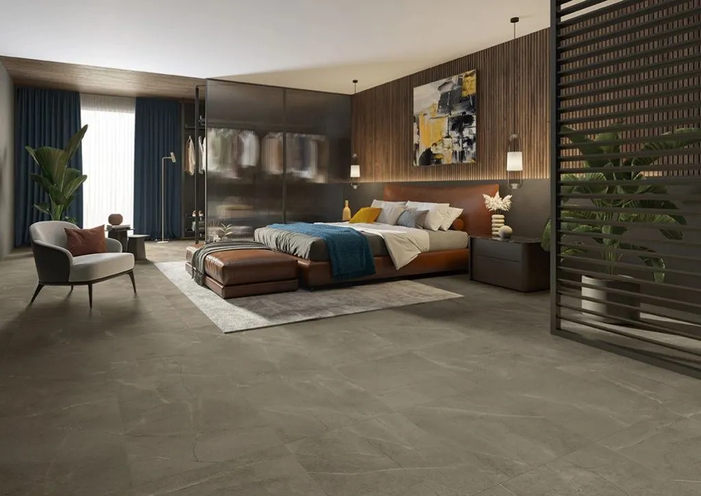 Матовая поверхность плитки не только выглядит эстетично, но и практична в использовании. Она легко очищается от загрязнений и не скользит, что делает керамогранит безопасным для всей семьи.