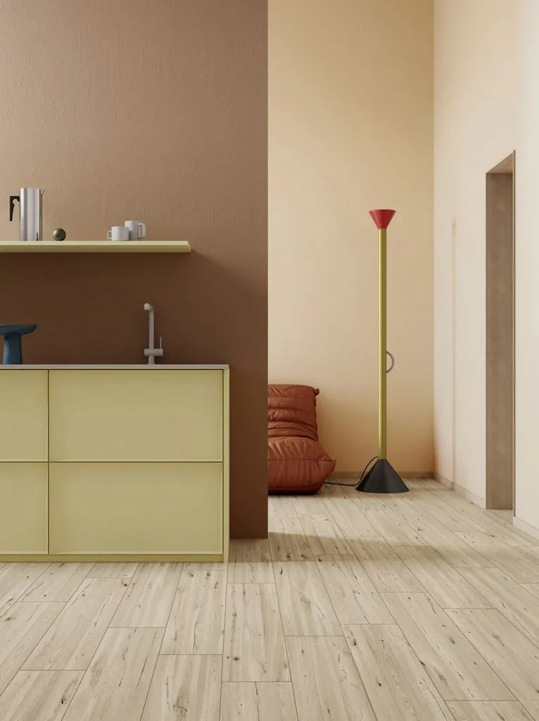 Этот керамогранит имеет прямоугольную форму и бежевый цвет, который имитирует текстуру дерева. Благодаря этому он отлично подойдёт для отделки пола в различных помещениях.