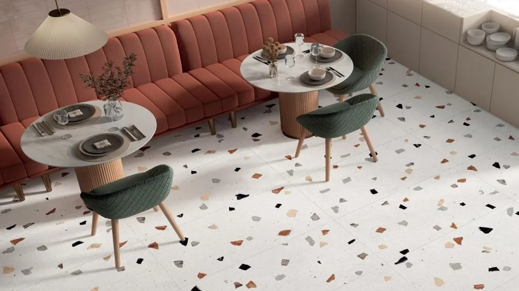 Цвет керамогранита — белый, что делает его универсальным решением для любого интерьера. Он гармонично сочетается с различными оттенками мебели и декора, а также визуально расширяет пространство.