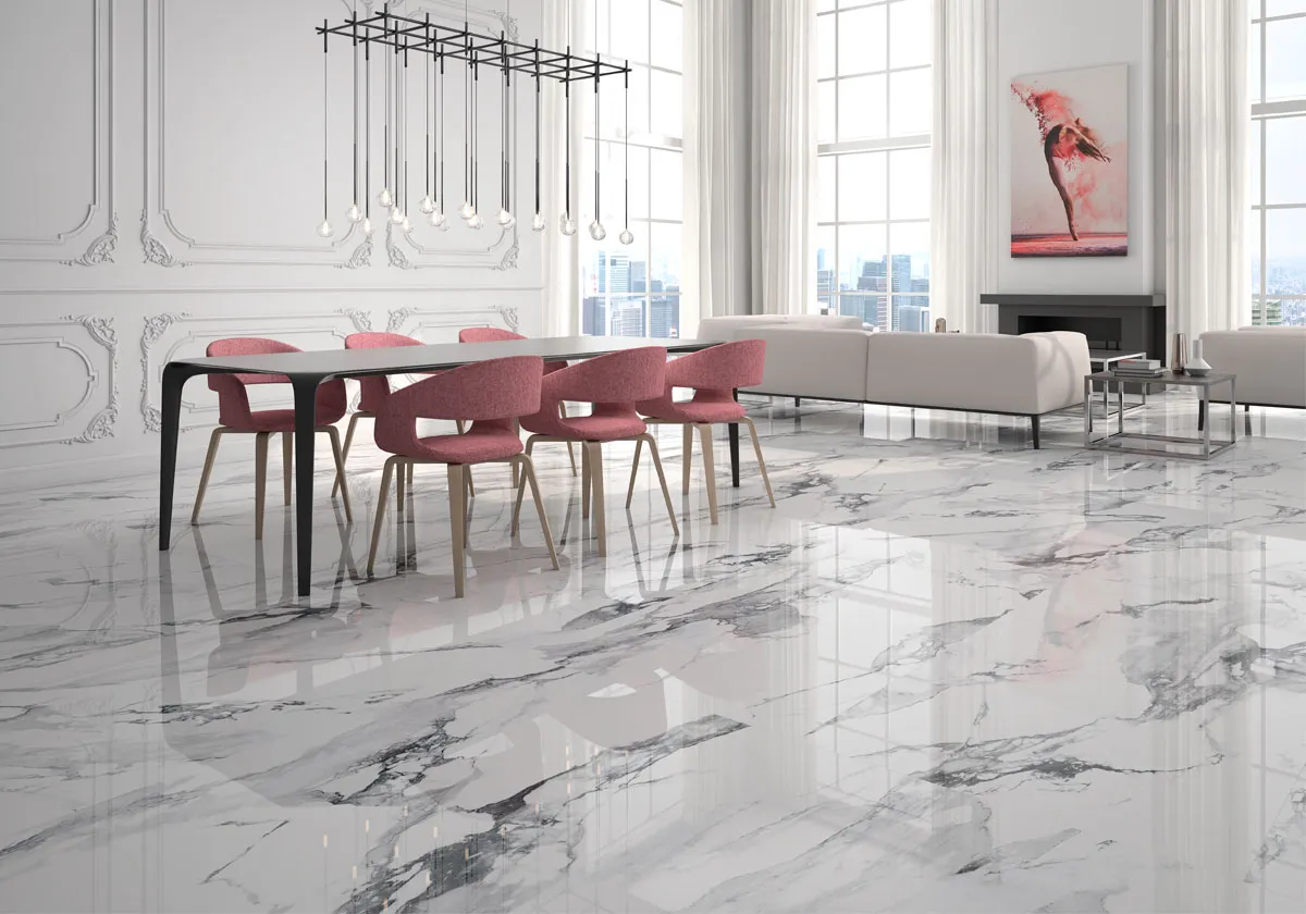размера 60x120, белого цвета. Данный вид керамогранита, имитирующий камень,