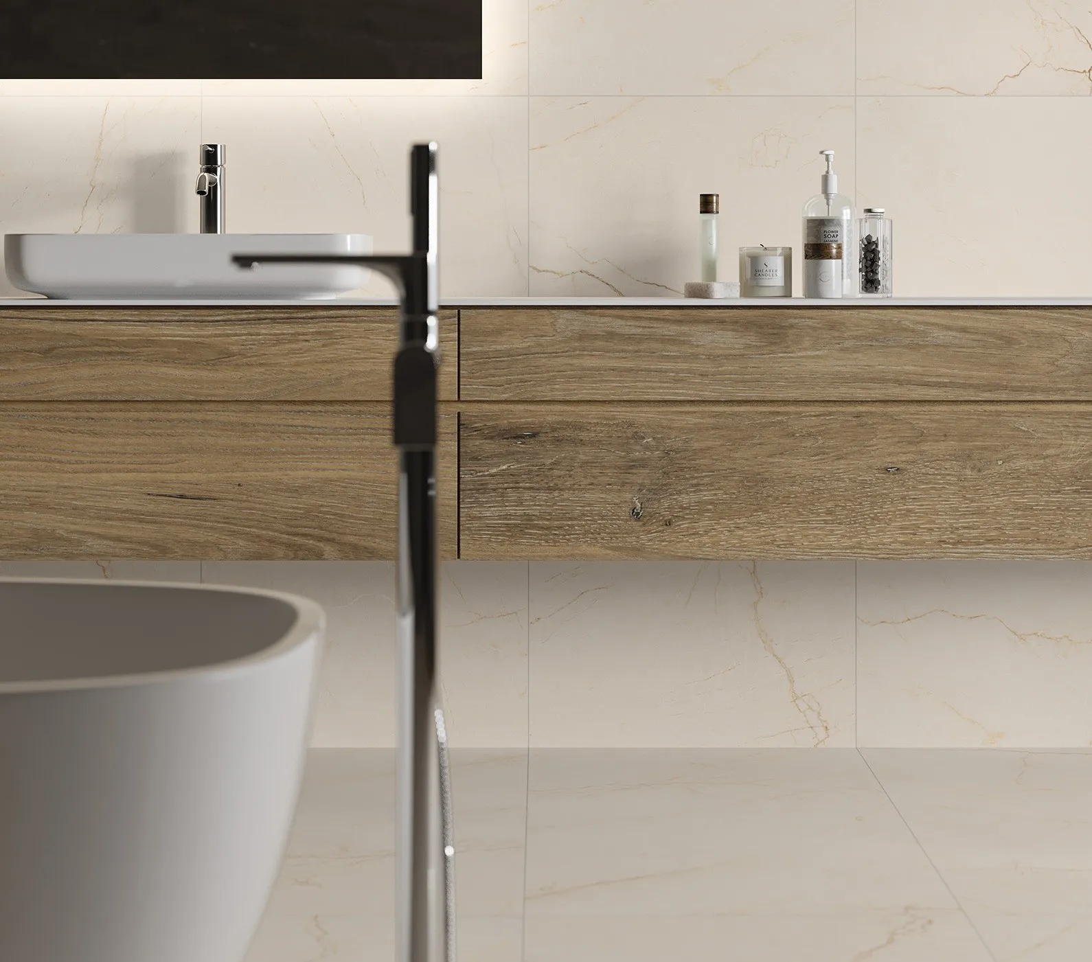 Испанский, глазурованный матовый керамогранит Crema Avorio 45x90 прямоугольной формы,