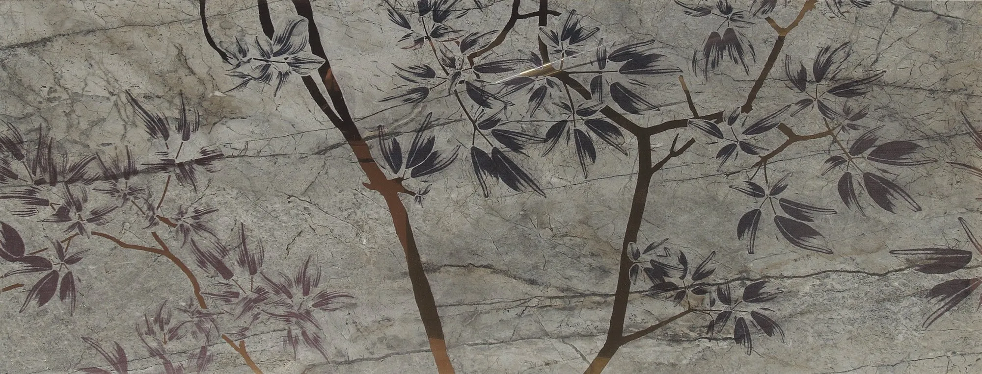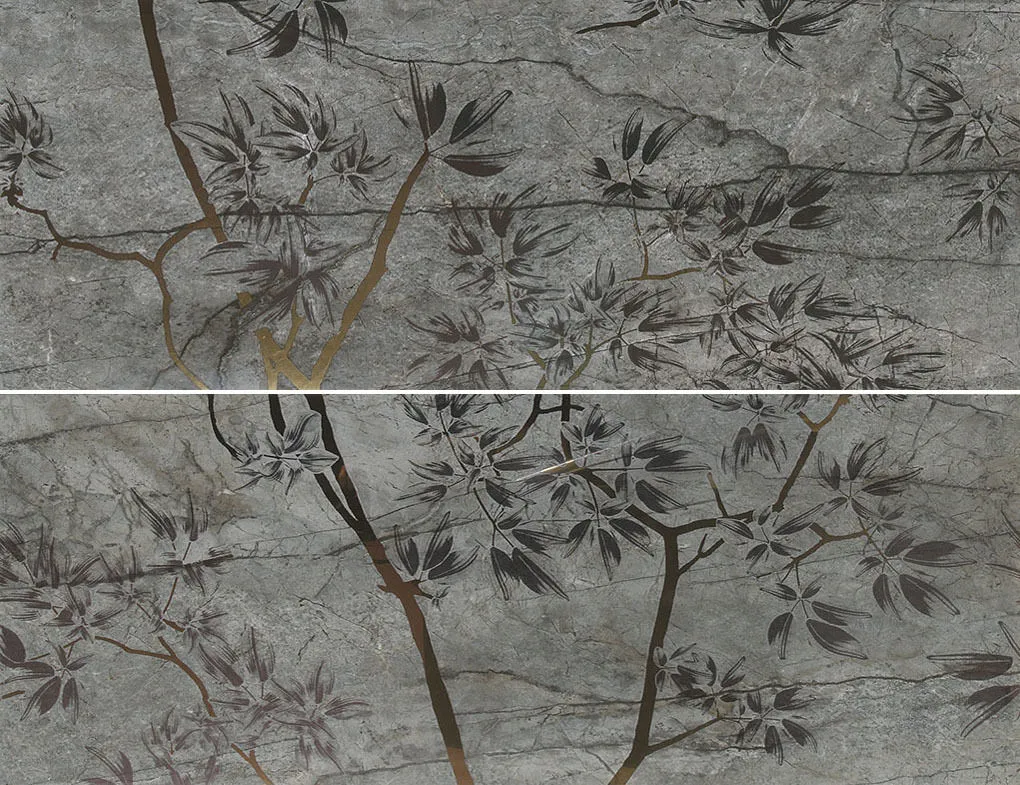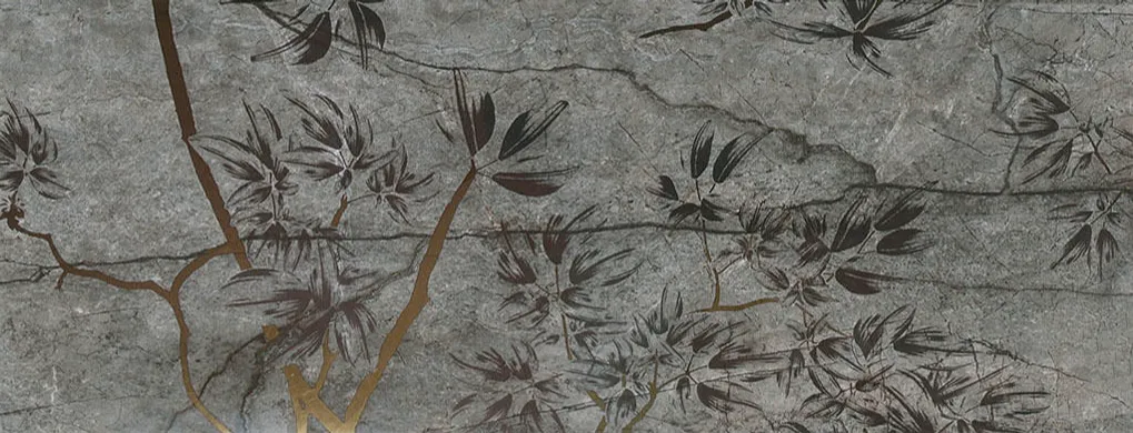размера 118.2x44.5, серого цвета. Данный вид керамогранита, с изображениями листьев,