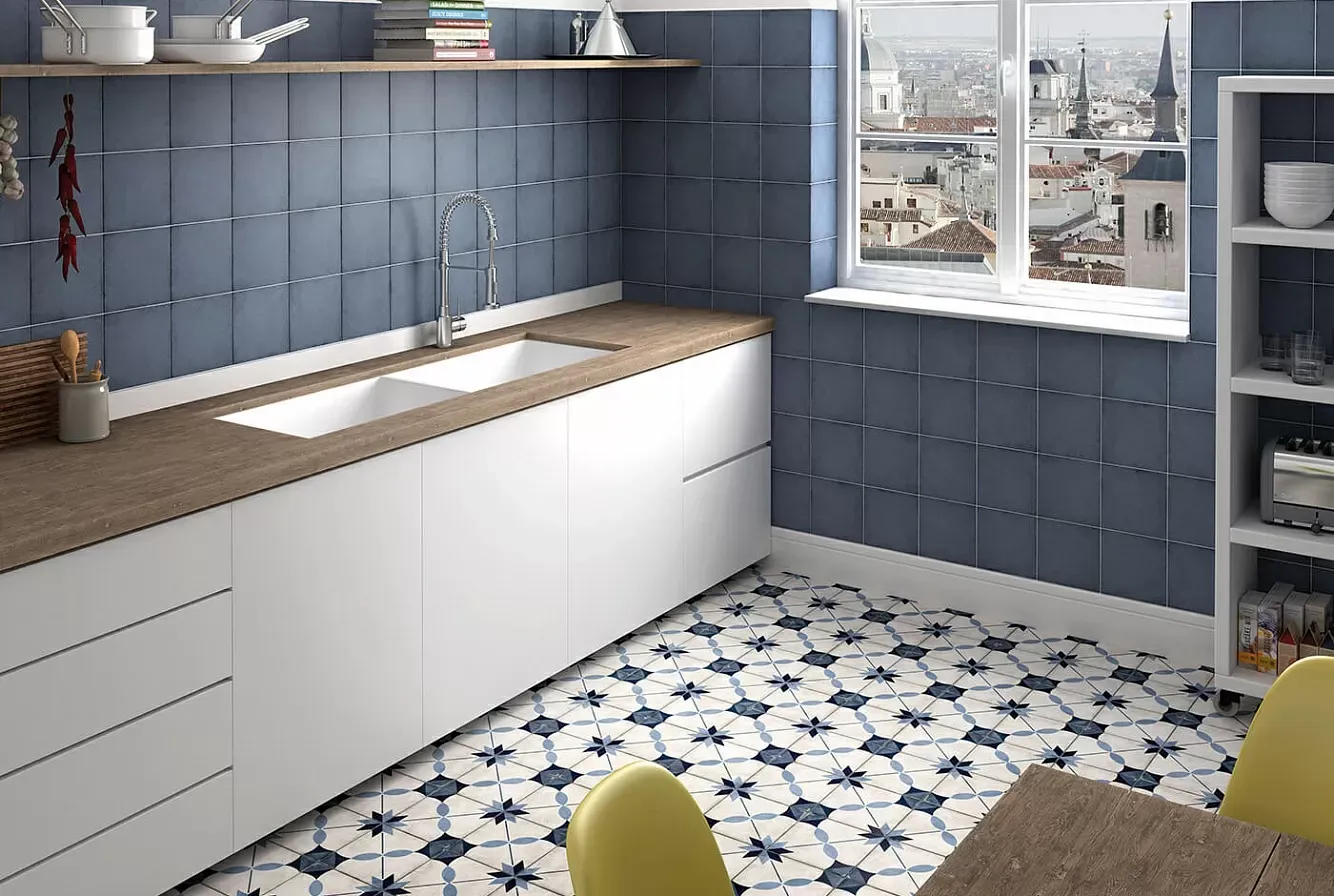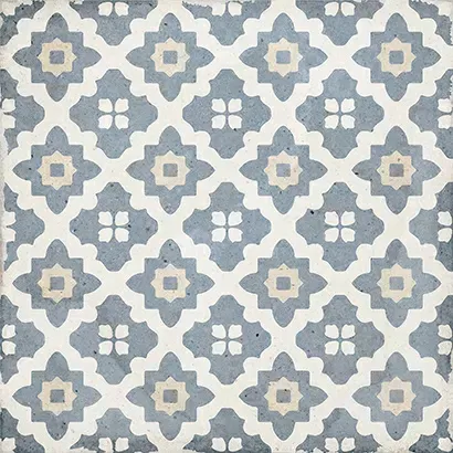 Испанский, натуральный керамогранит 24412 ART NOUVEAU ALAMEDA COLOUR 20*20 квадратной формы, размера 20x20, голубого цвета. Данный вид керамогранита, с рисунком печворк, подойдет как декор Вашей ванной.