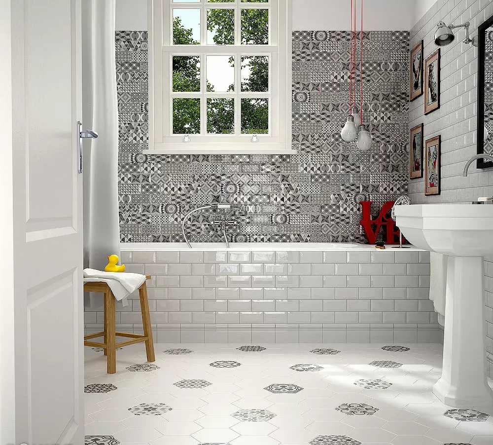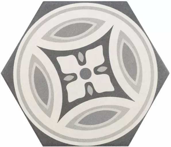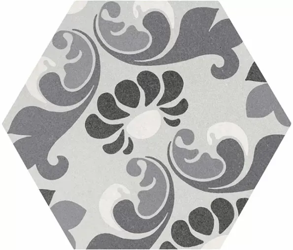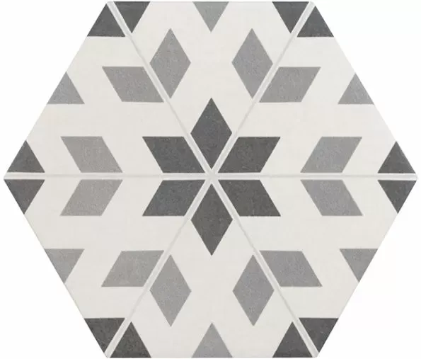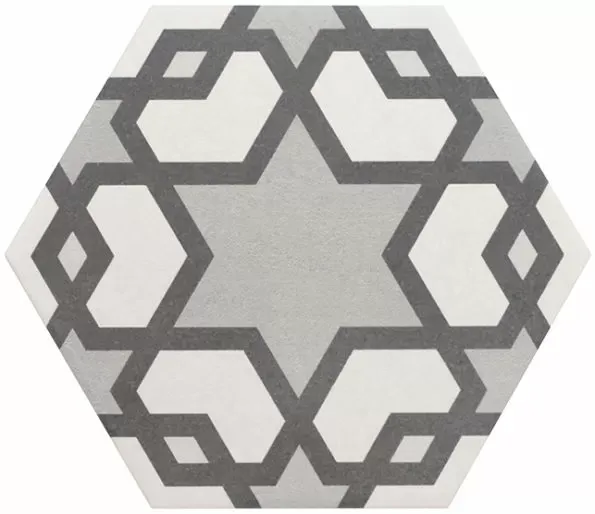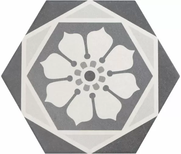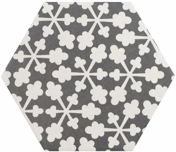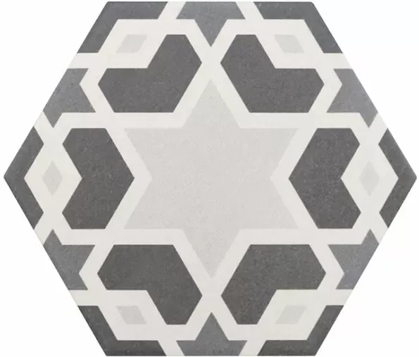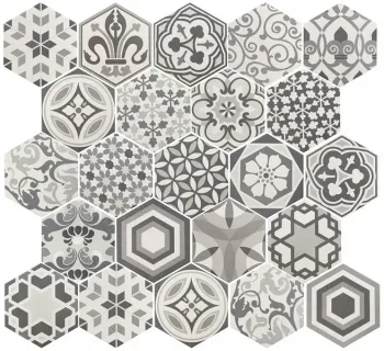 Испанский, натуральный керамогранит 21357 Hexatile Harmony B&W 17,5x20 шестигранной формы, размера 17.5x20, кофейного цвета. Данный вид керамогранита, с рисунком печворк, подойдет как декор Вашей ванной.
