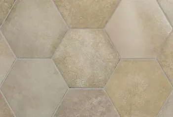 Испанский, глазурованный глянцевый керамогранит 24955 HERITAGE WHEAT 17,5x20 шестигранной формы, размера 17.5x20, бежевого цвета. Данный вид керамогранита, имитирующий камень, подойдет для пола Вашей ванной.