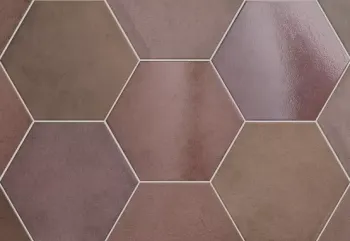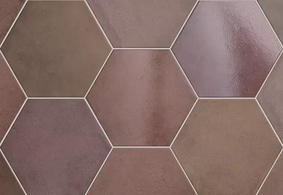 Испанский, глазурованный глянцевый керамогранит 24956 HERITAGE WINE 17,5x20 шестигранной формы, размера 17.5x20, бордового цвета. Данный вид керамогранита, имитирующий камень, подойдет для пола Вашей ванной.