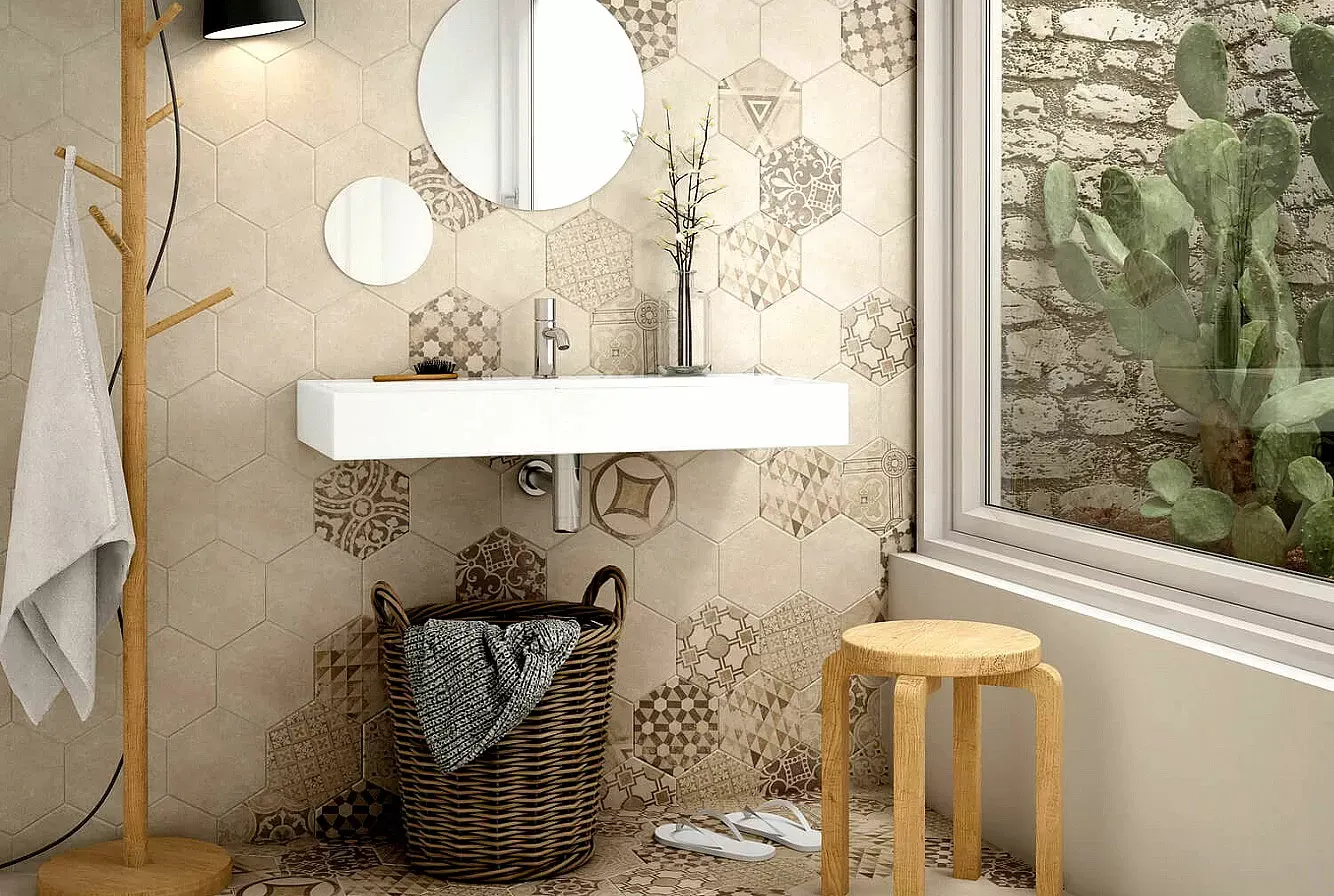 Испанский, натуральный керамогранит 22094 Hexatile Cement Black 17,5x20 шестигранной формы, размера 17.5x20, серого цвета. Данный вид керамогранита, имитирующий бетон, подойдет для пола Вашей ванной.