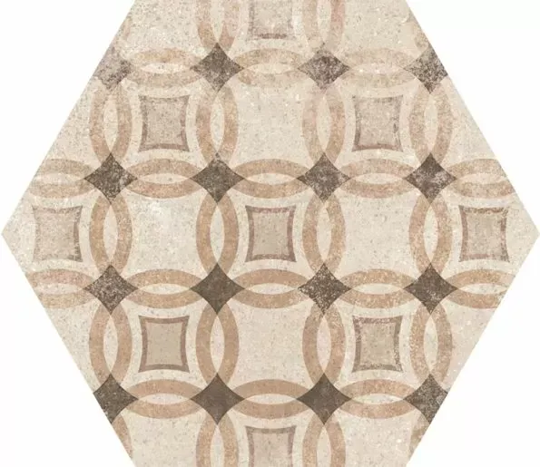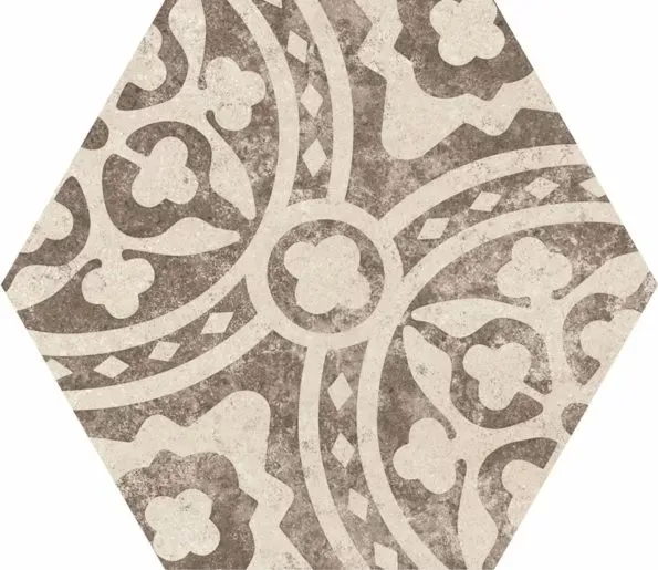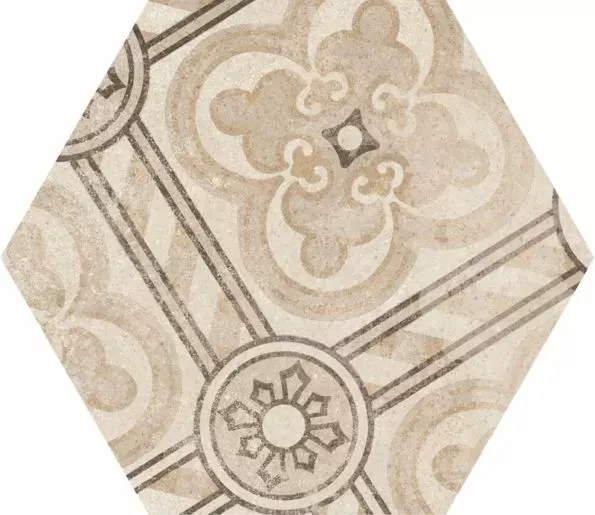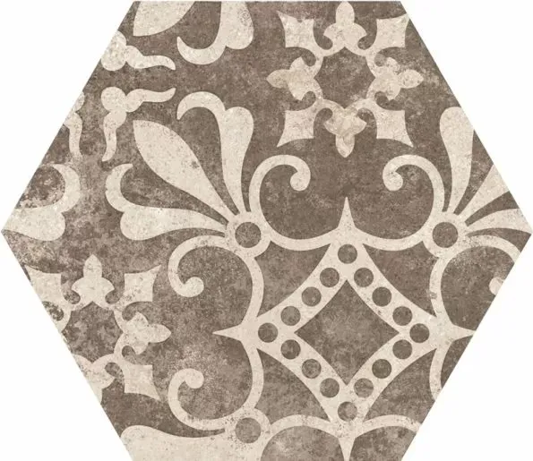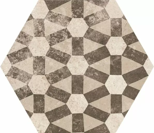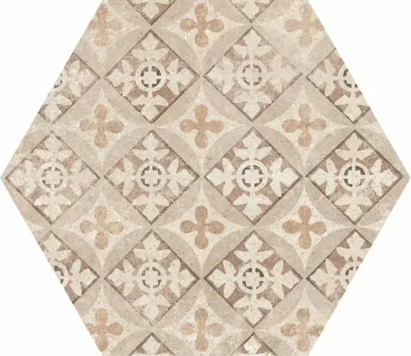 Испанский, натуральный керамогранит 22098 Hexatile Cement Garden Sand 17,5x20 (17 видов паттерна) шестигранной формы, размера 17.5x20, кофейного цвета. Данный вид керамогранита, с оригинальным орнаментом, подойдет как декор Вашей ванной.