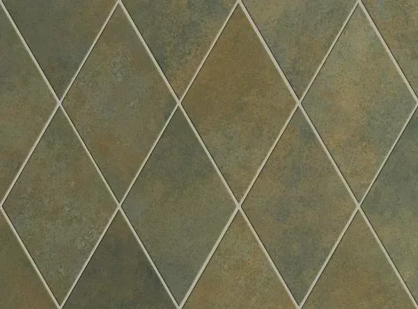 Испанский, натуральный керамогранит 27478 OXIDE VERDE 14x24 в форме ромба, размера 14x24, болотного цвета. Данный вид керамогранита, имитирующий камень, подойдет для пола Вашей ванной.