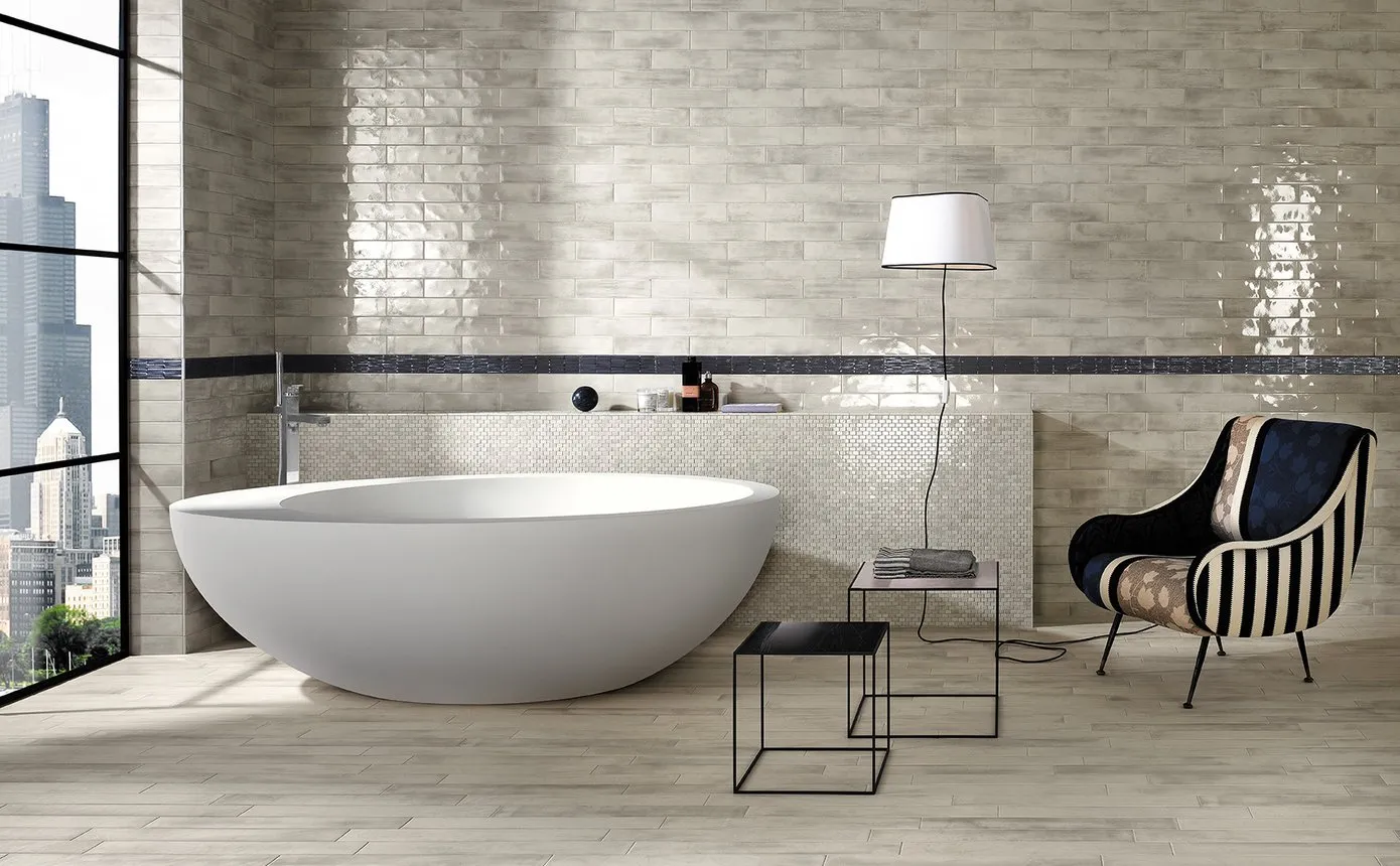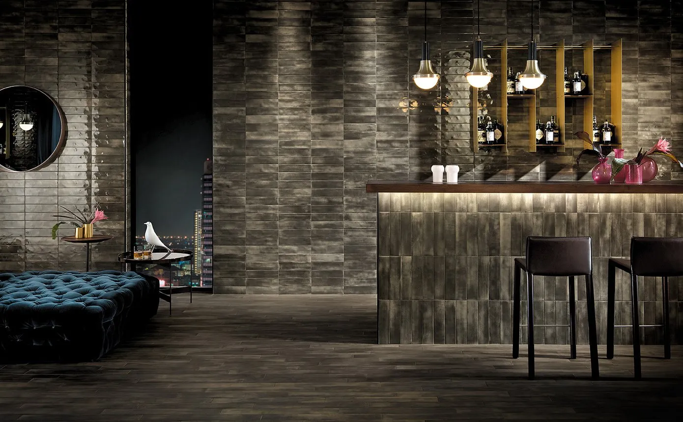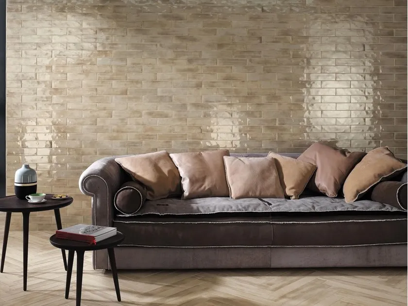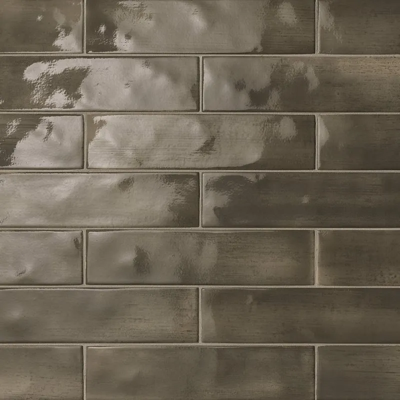 Итальянский, глазурованный глянцевый керамогранит fNSP Brickell Brown Gloss 7.5x30 в форме кирпича,