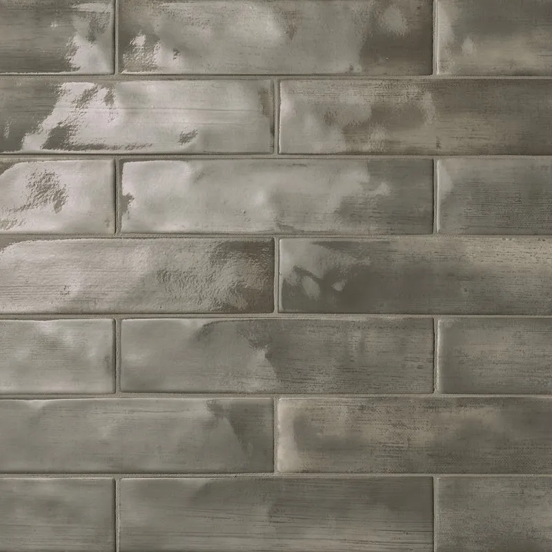 Итальянский, глазурованный глянцевый керамогранит fNSQ Brickell Grey Gloss 7.5x30 в форме кирпича,
