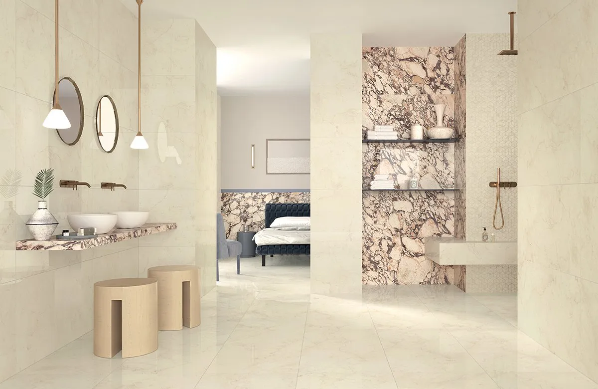 Итальянский, полированные керамогранит I431 Foyer Royal Delicate Reflex rett 60x119.5 прямоугольной формы,