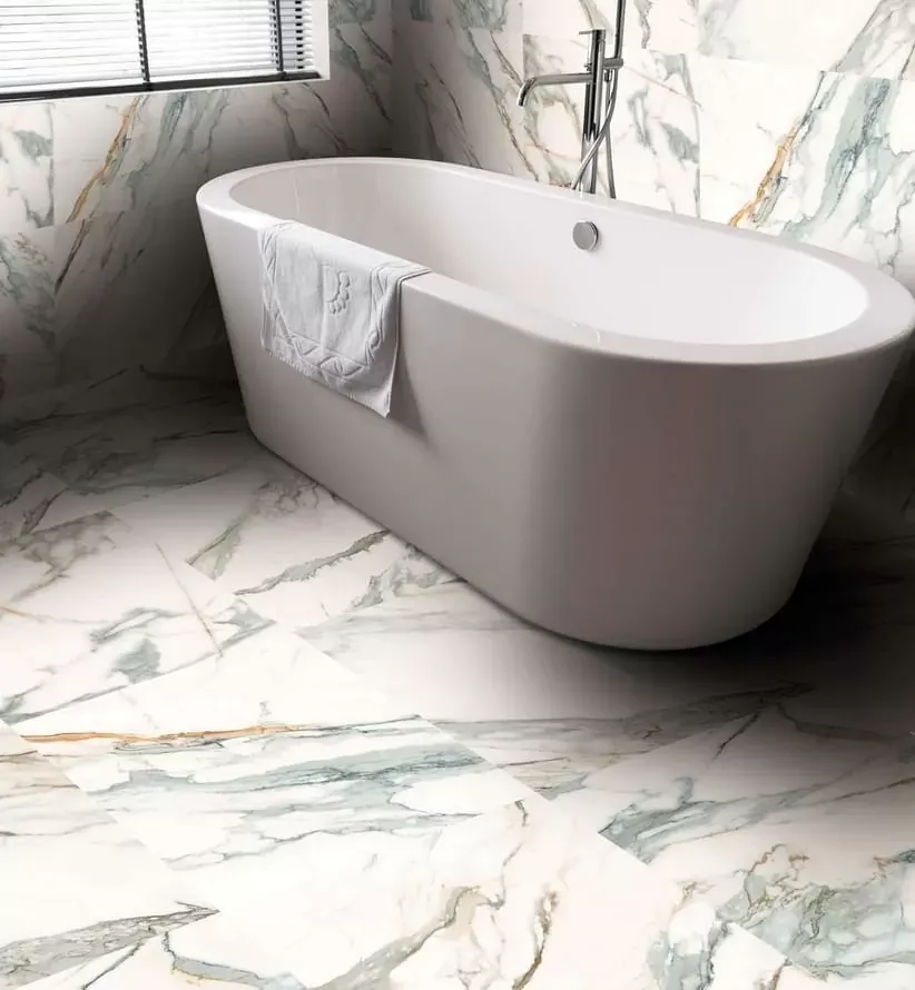 Итальянский, натуральный керамогранит Calacatta Blue 60 RM 60x60 квадратной формы, размера 60x60, белого цвета. Данный вид керамогранита, имитирующий камень, подойдет для пола Вашей ванной.