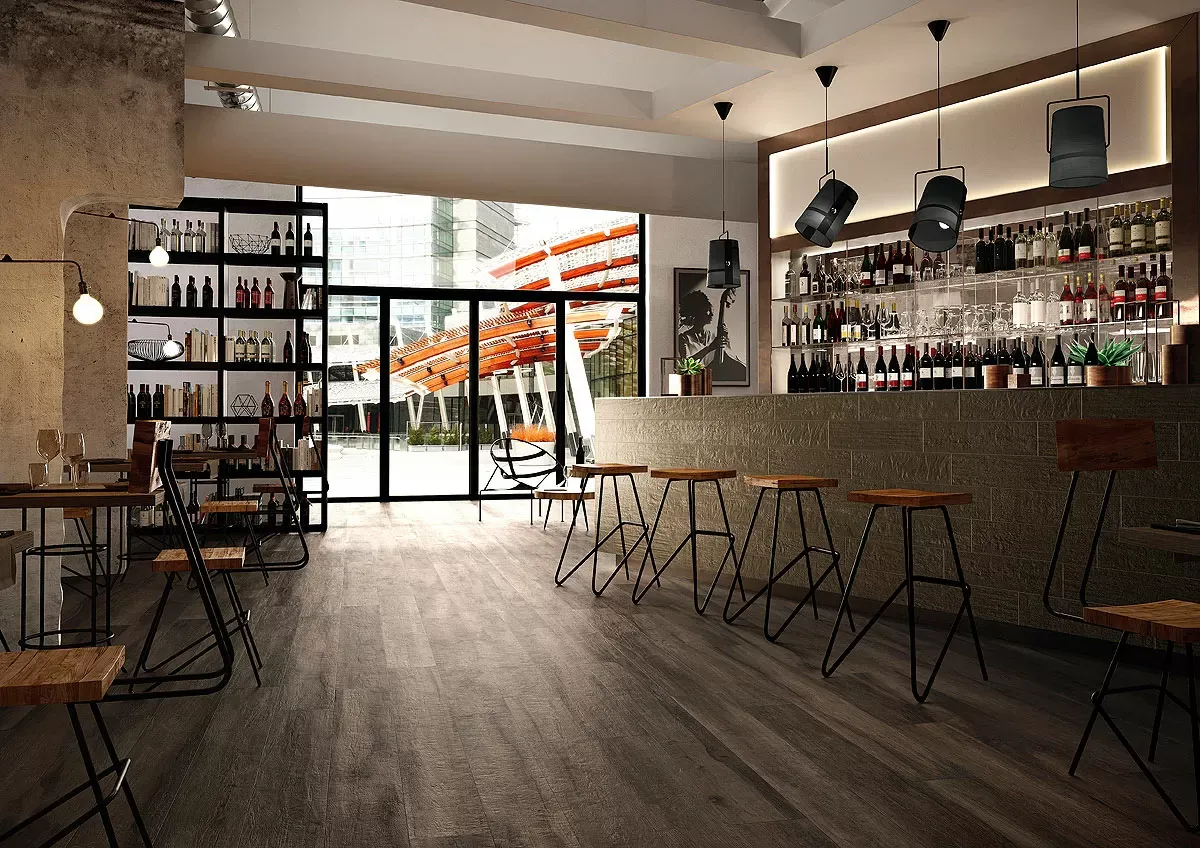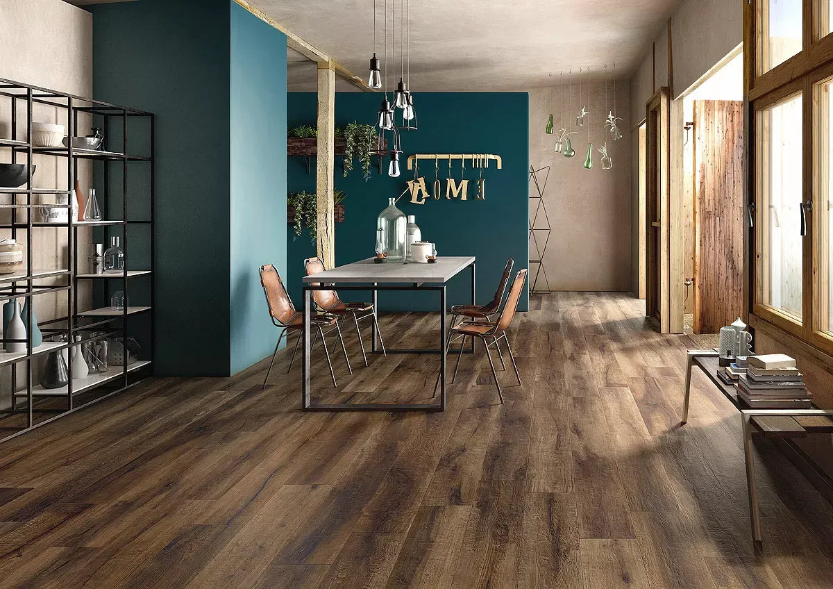 Итальянский, натуральный керамогранит KUNI 2012T 20*120 в форме паркетной доски, размера 120x20, коричневого цвета. Данный вид керамогранита, с рисунком под дерево, подойдет для пола в Вашу гостиную.