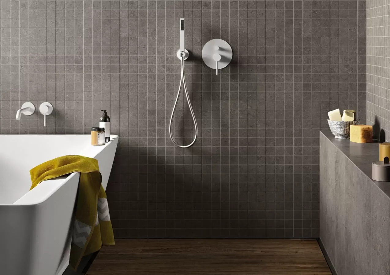 Итальянский, натуральный керамогранит WALK 36DG 30x60 прямоугольной формы, размера 30x60, серого цвета. Данный вид керамогранита, имитирующий бетон, подойдет для пола Вашей ванной.