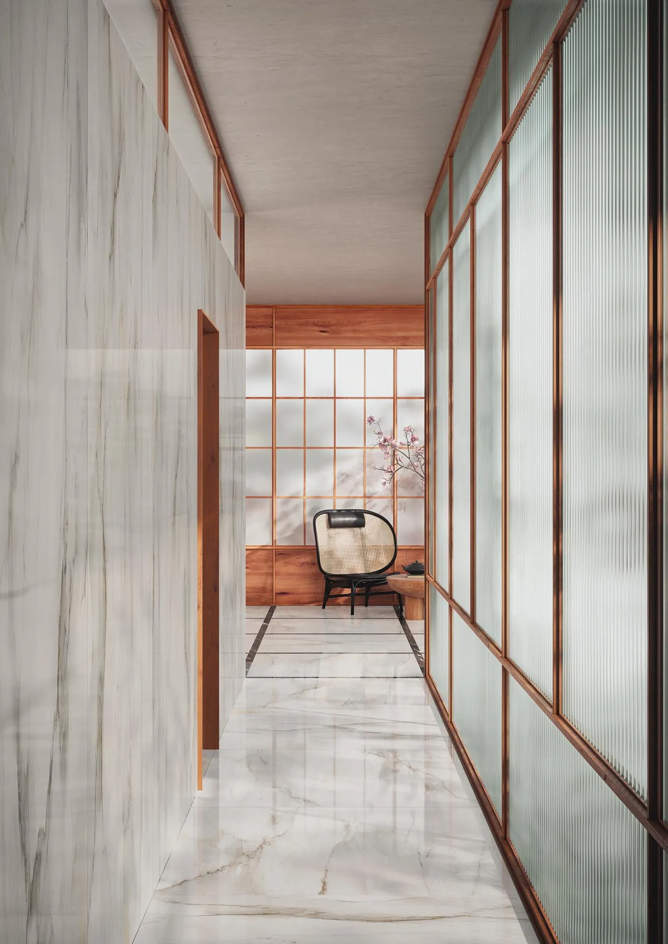 размера 75x150, белого цвета. Данный вид керамогранита, имитирующий камень,