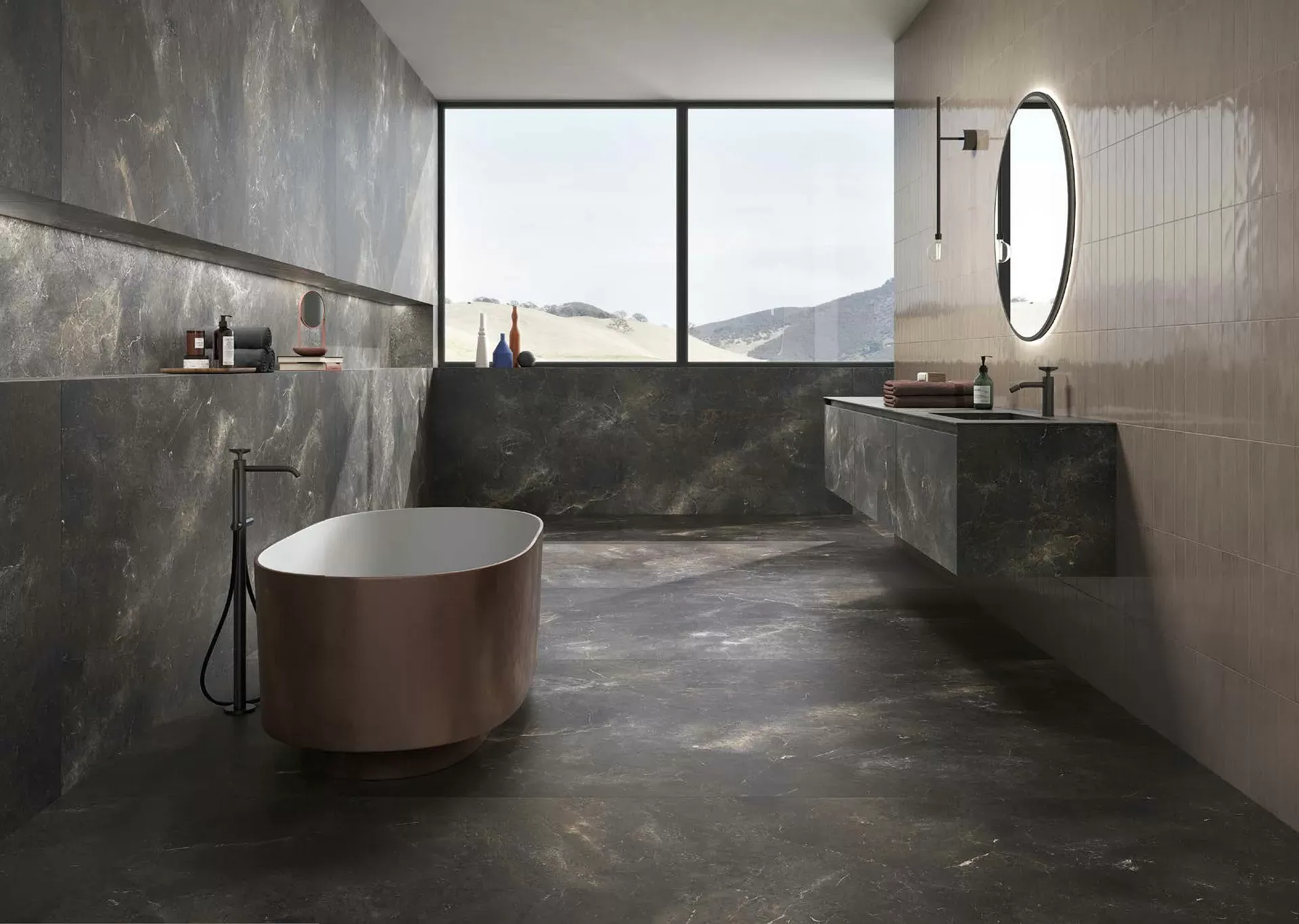 Итальянский, антислип керамогранит P175592MF6 Art Stone Abyss Grey Naturale 75x150 прямоугольной формы, размера 150x75, коричневого цвета. Данный вид керамогранита, имитирующий камень, подойдет для пола Вашей ванной.