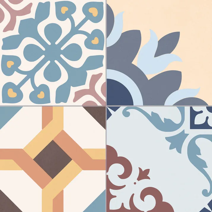 размера 33.15x33.15, голубого цвета. Данный вид керамогранита, с рисунком печворк,