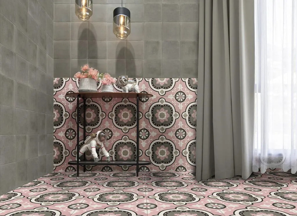 Благодаря классическому розовому цвету и квадратной форме плитка гармонично впишется в любой стиль интерьера. Она станет ярким акцентом или спокойным фоном для других элементов декора.