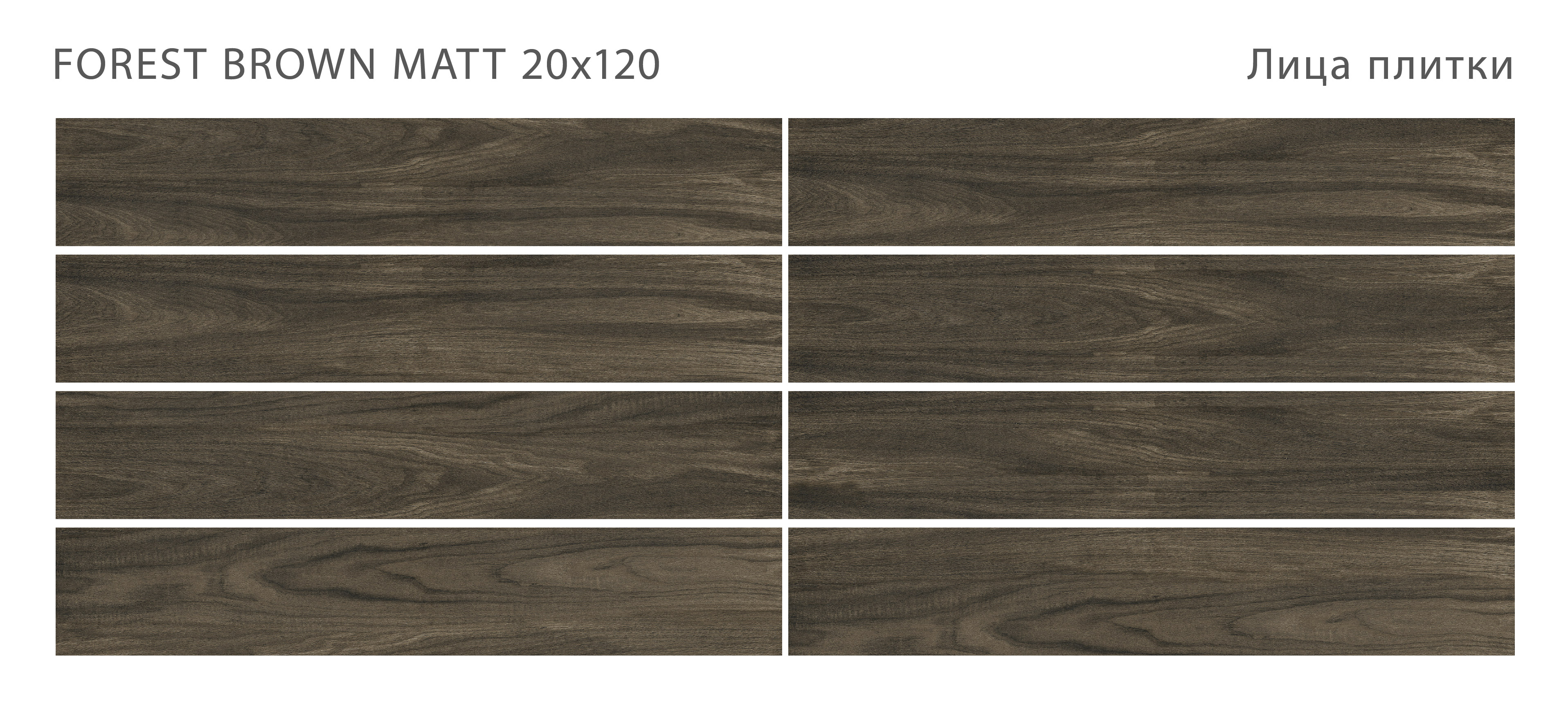 FOREST - коллекция из матового керамогранита 20х120, поверхность которого имитирует натуральное дерево различных тонов.