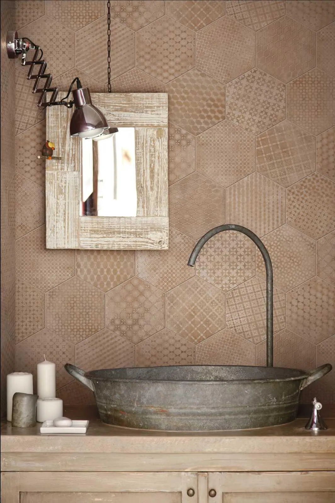 размера 15x30, коричневого цвета. Данный вид керамогранита, имитирующий камень,
