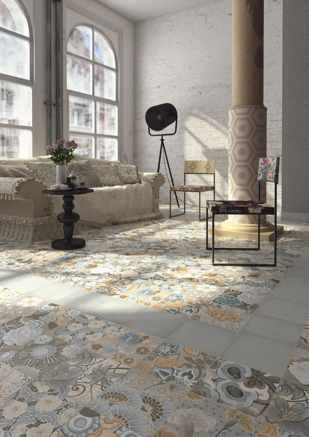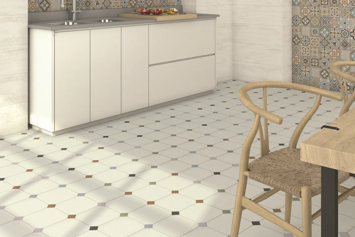Испанский, глазурованный матовый керамогранит Octogono Diglas Multicolor 20x20 октагональной формы,