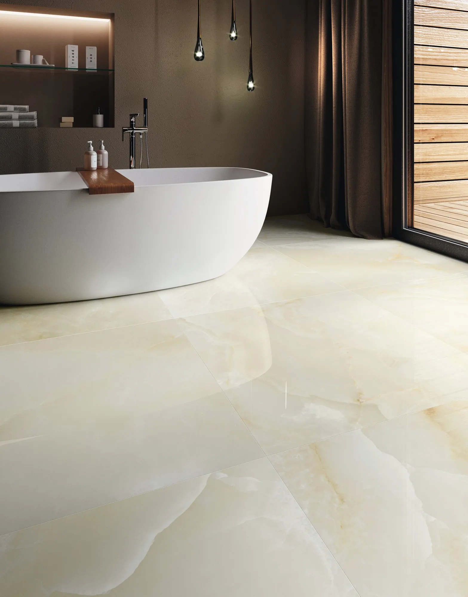 Испанский, полированные керамогранит ONIX BLANCO NPLUS 90x90 квадратной формы,
