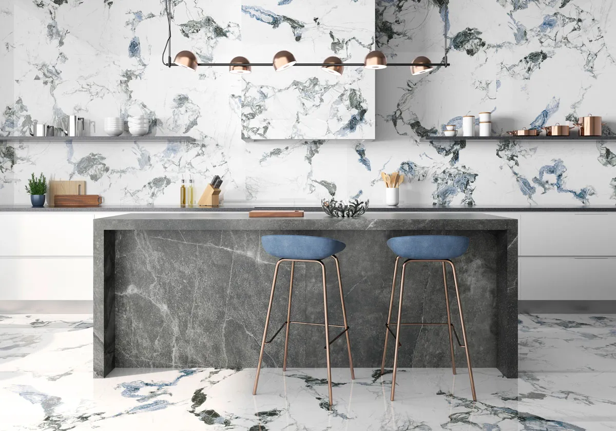 размера 120x60, синего цвета. Данный вид керамогранита, имитирующий камень,