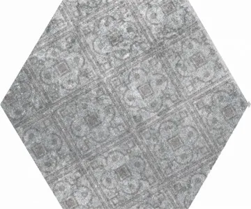 Испанский, натуральный керамогранит Pompeia Decor Gris 20х24 шестигранной формы,