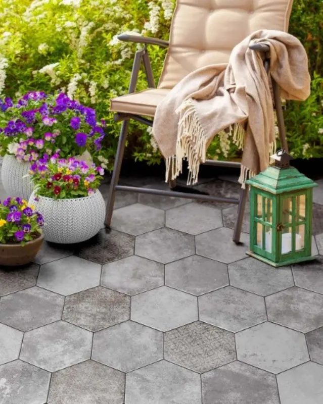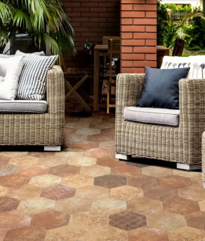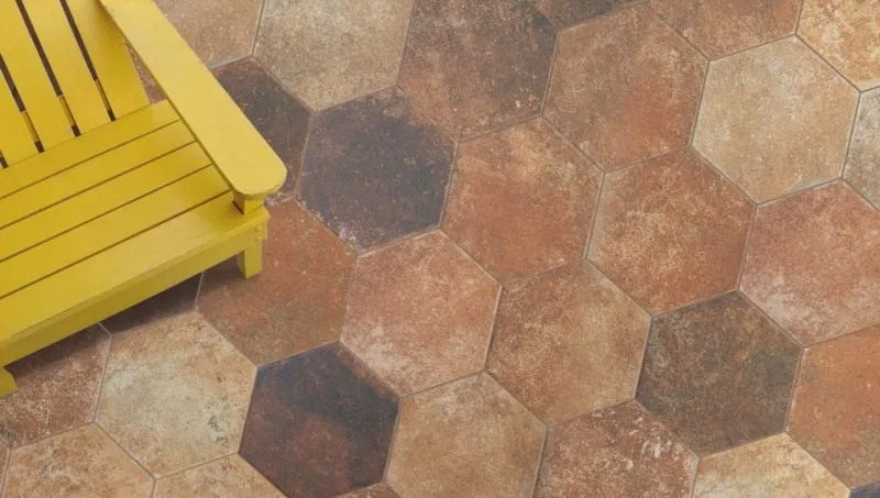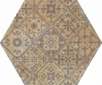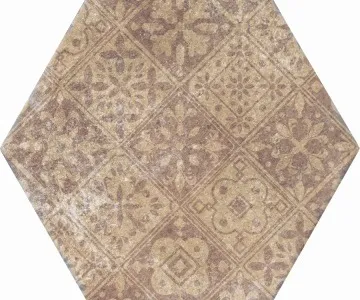 Испанский, натуральный керамогранит Pompeia Decor Marron 20х24 шестигранной формы,