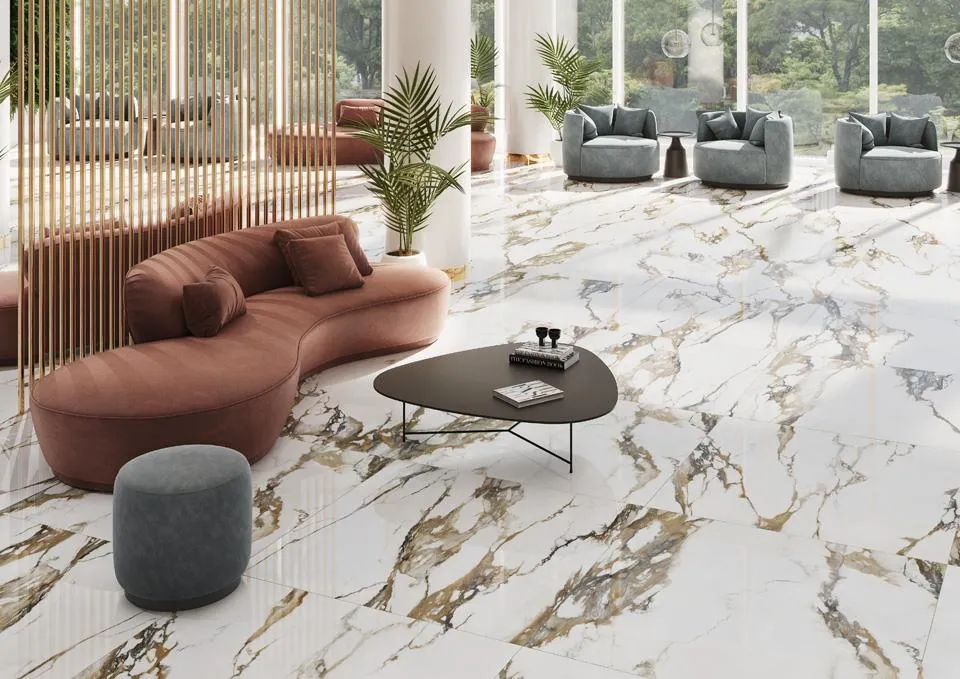 размера 60x120, белого цвета. Данный вид керамогранита, имитирующий камень,