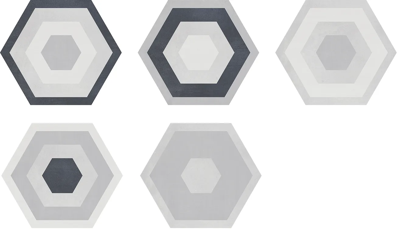 Испанский, глазурованный матовый керамогранит Starkdec Gris mix 25x29 шестигранной формы,