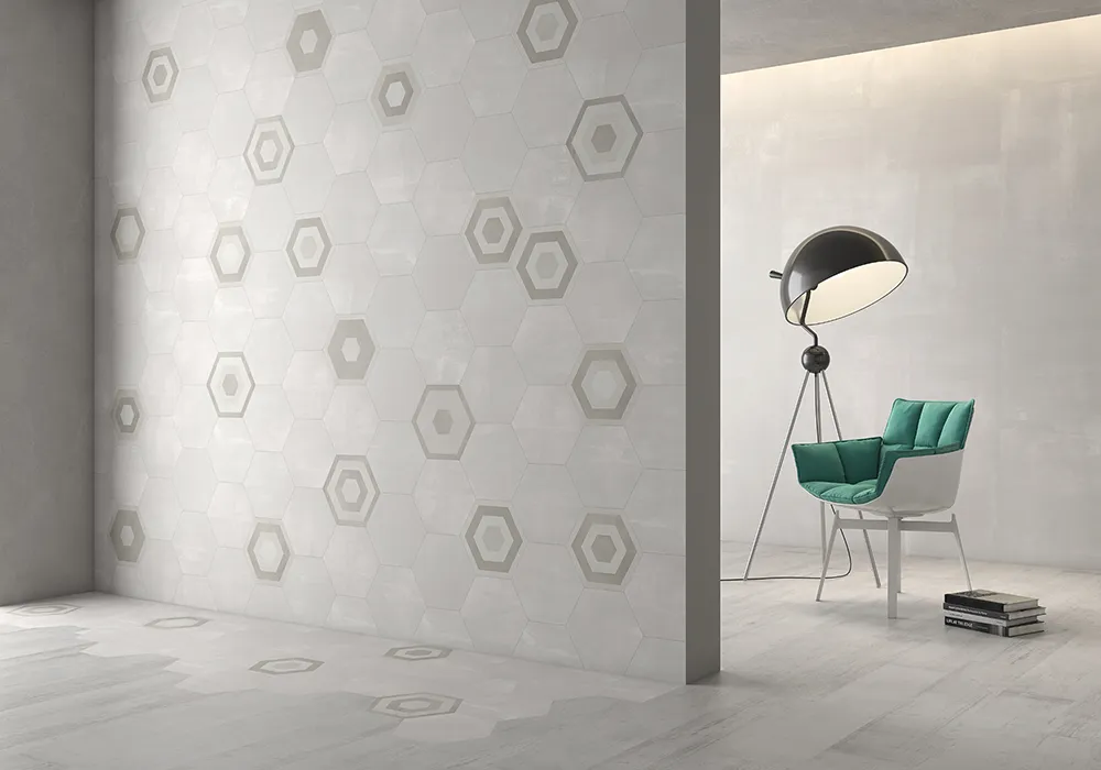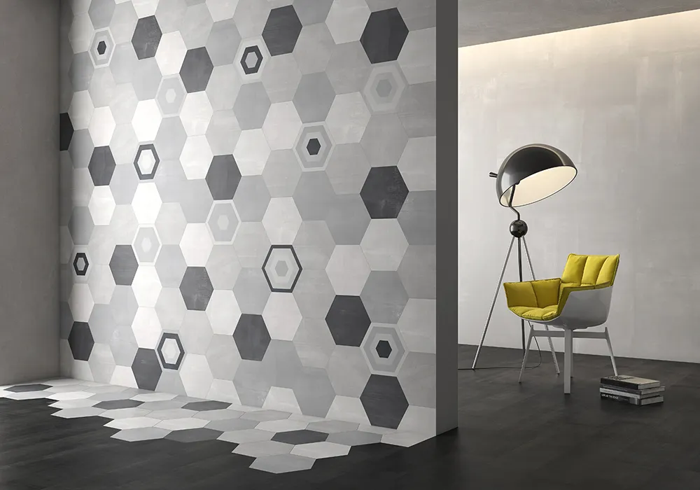 Испанский, глазурованный матовый керамогранит Starkhex Mica 25x29 шестигранной формы,
