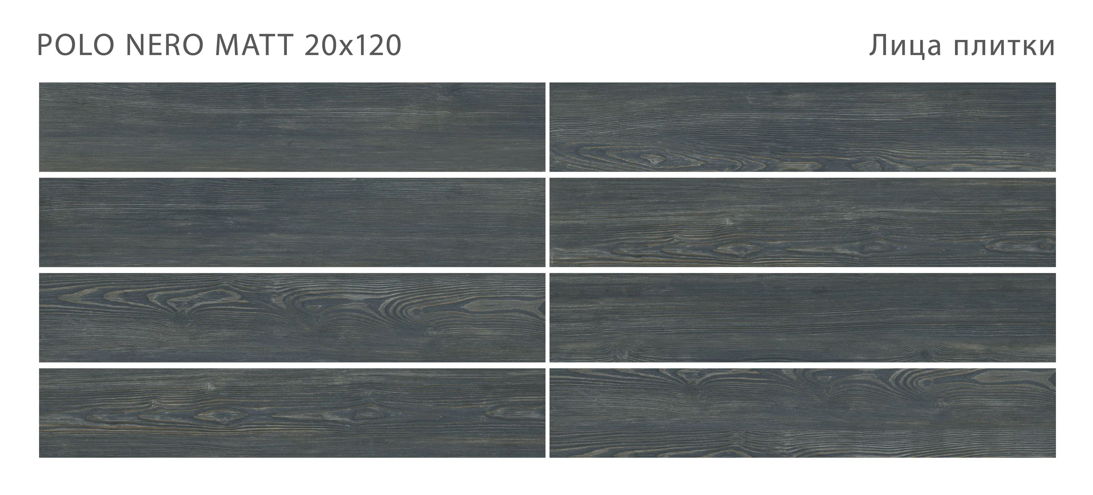 POLO - коллекция из матового керамогранита 20х120, поверхность которого имитирует натуральное дерево различных тонов.