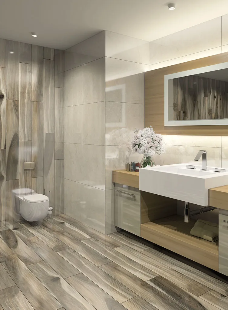 размера 120x20, бежевого цвета. Данный вид керамогранита, с рисунком под дерево,